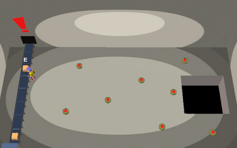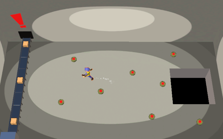Load boxes from the increasingly fast conveyor belt into the drop zone to score points! Don't let the boxes reach the end of the conveyor belt, or you'll be fired from your job loading boxes (Game Over), and make sure to avoid the landmines.